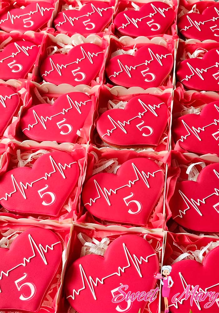 Эти уникальные пряники станут настоящим украшением любого стола! Каждый пряник выполнен в форме сердечка яркого красного цвета, что сразу же привлекает внимание. На поверхности нежно выгравирована кардиограмма, символизирующая любовь к здоровью и заботу о близких. Идеально подходит для подарков, корпоративных мероприятий или просто как вкусное напоминание о том, что сердце должно биться ровно и радостно. Подарите своим близким кусочек тепла и заботы с каждым кусочком этого сладкого шедевра!