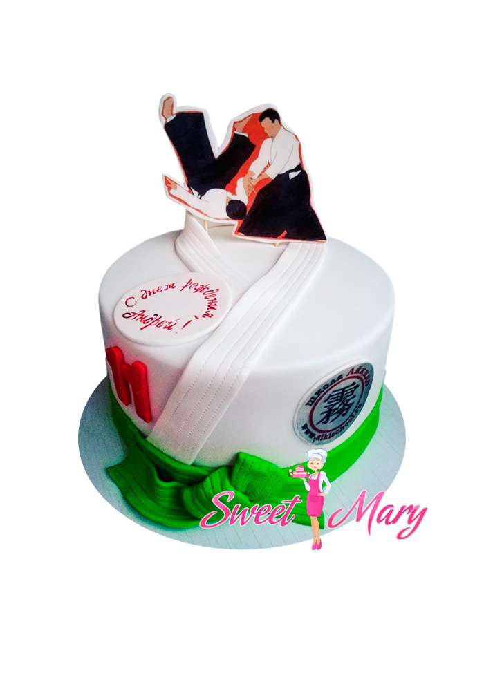 Торт “Айкидо «Мастерство и страсть»” — это уникальное кулинарное произведение, созданное специально для юного любителя боевых искусств. Этот торт поражает своим изяществом: его нежный белый фон украшен яркой зеленой полоской, символизирующей путь к совершенству. В центре композиции выделяется силуэт борющегося мальчика, воплощающий дух силы и гармонии айкидо. Этот торт станет настоящим украшением праздничного стола на день рождения 11-летнего юбиляра, вдохновляя на новые достижения и наполняя атмосферу праздника духом дружбы и боевого искусства. Идеально подходит как для домашнего торжества, так и для корпоративного мероприятия, посвященного интересам молодого бойца.