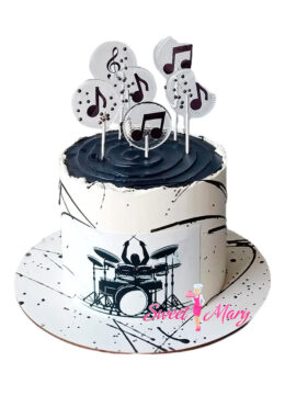 Торт “Барабан «Бит и сладость»” — это уникальное кулинарное произведение искусства, созданное специально для юбиляра, достигшего 14-летия! Белоснежная основу торта украшает роскошное покрытие из глянцевого шоколада, подчеркивая его изысканность и праздничность. Центральное место занимает стилизованное изображение барабана, выполненное из кондитерских элементов, окруженное изящными нотами, словно музыка наполняет воздух вокруг. На торте также присутствуют миниатюры музыкальных инструментов — пианино и наушники, которые гармонично дополняют тему праздника, делая его особенно запоминающимся для меломанов и музыкантов. Этот торт станет настоящим центром внимания на дне рождения, подарив радость и вдохновение как юному музыканту, так и его друзьям!