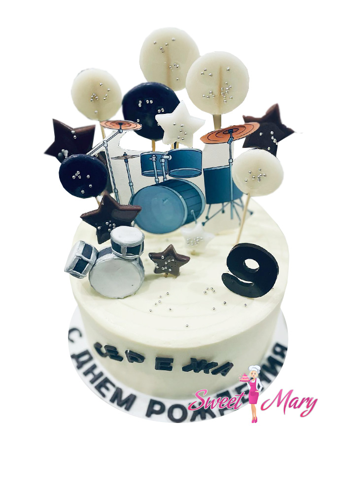 Торт “Барабан «Бит в каждом слое»” – это незабываемый сюрприз для юного музыканта на 9-летие! Великолепное украшение стола, он украшен изящными фигурками барабанов, которые создают атмосферу живого концерта. Каждый слой торта наполнен нежным кремом с ноткой цитрусовых, а на верху аккуратно разложены разноцветные леденцы на палочке, словно мелодичные ноты, добавляя сладость и радость празднику. Этот торт не просто угощение – это настоящий музыкальный подарок, который точно вызовет восторг у именинника и его друзей!