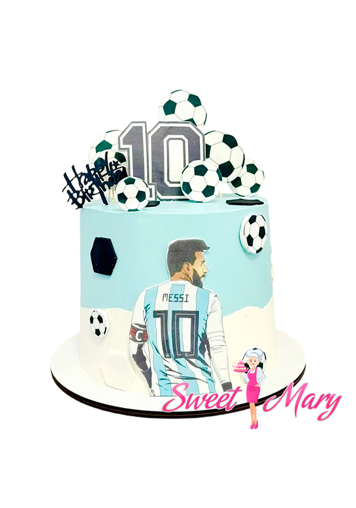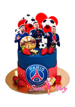 Торт “Барселонский футбол” — это настоящий праздник для любого юного фаната! Этот торт бело-голубого цвета украшен элегантным логотипом любимого клуба Барселона, а также символическими элементами: динамичным изображением Лионеля Месси в действии, разноцветными футбольными мячами и бутсами, что создает неповторимую атмосферу футбольного триумфа. Идеальное угощение на день рождения мальчика, который мечтает стать настоящим игроком!