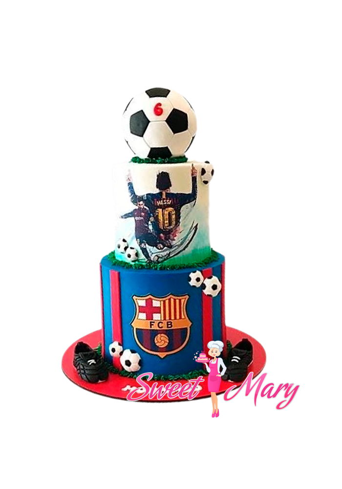 Торт “Барселона «Испанский гол»” — это настоящий праздник для юного фаната футбола! Двухъярусное лакомство поражает своим дизайном: нежные слои торта окрашены в бело-голубые и красные тона, отражая цвета знаменитой команды. На верхнем ярусе торжественно располагается логотип любимой команды, окруженный изящными изображениями бутсов и футбольного мяча. В центре композиции — символ победы, вдохновленный легендой футбола Лионелем Месси. Этот торт станет незабываемым подарком на день рождения мальчика 6 лет, наполняя его праздничное настроение любовью к футболу и вкусом настоящего праздника!