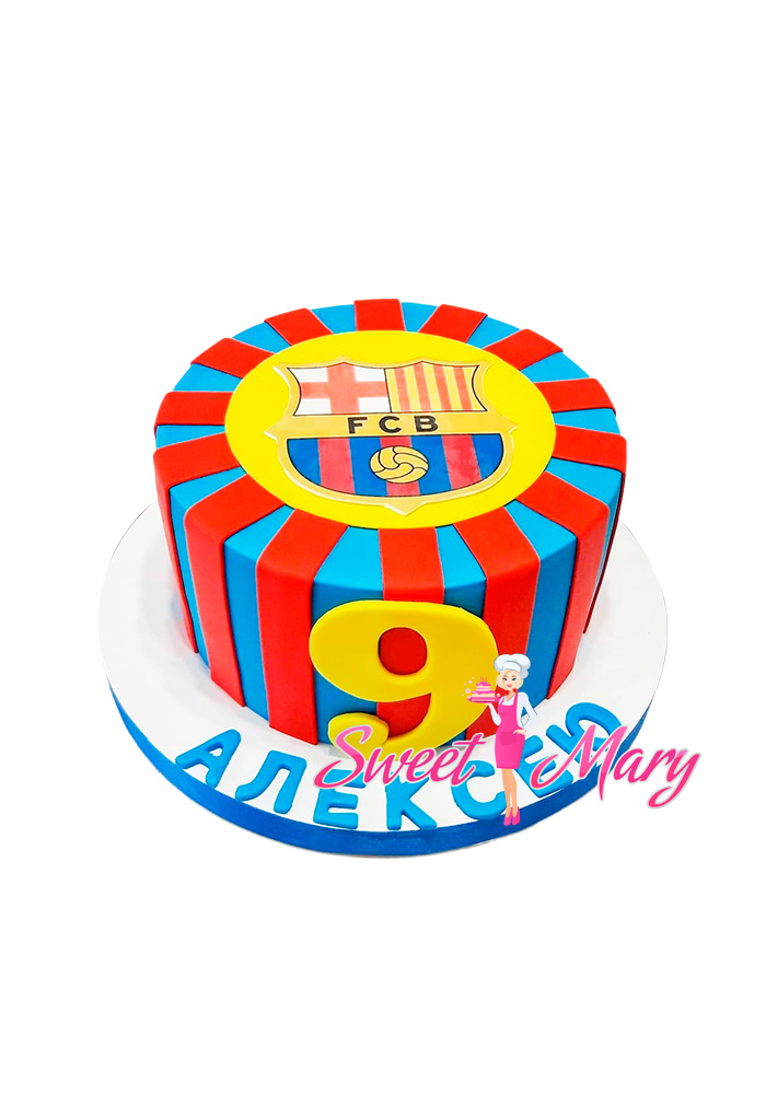 Торт “Барселона «Полосатый»” — это роскошное лакомство для настоящего болельщика! Создан в красочном красно-синем дизайне, он украшен узнаваемым логотипом любимой футбольной команды Барселоны. В центре торта гордо размещена цифра 9, символизирующая легендарные номера великих игроков. Этот торт станет идеальным подарком на день рождения юного фаната, наполняя праздничное настроение неповторимой атмосферой страсти к футболу.