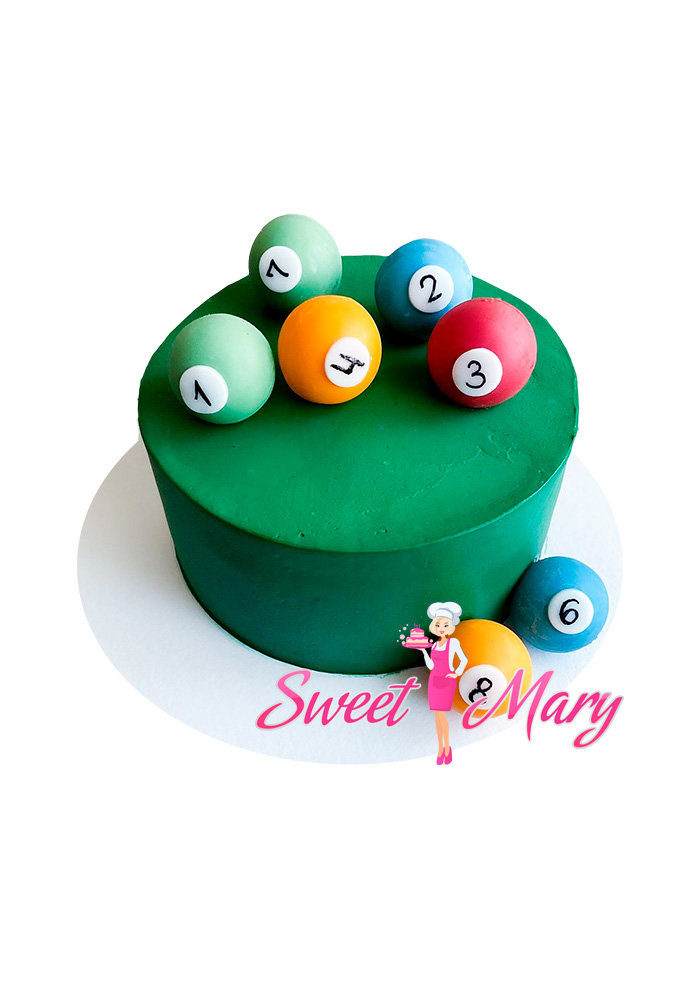 Торт “Бильярдная ночь” — это уникальное кулинарное произведение, созданное специально для настоящих ценителей бильярда и неповторимых вечеров за зеленым столом. Этот восхитительный десерт выполнен в элегантных тонах зеленого цвета, напоминая о благородной игре. Его поверхность украшена настоящими бильярдными шарами, которые добавят праздничному столу нотку роскоши и оригинальности. Этот торт идеально подходит для торжественного дня рождения мужчины, который любит проводить время за азартными играми или просто ценит стильные и необычные подарки. Вкусный и нежный крем, нежная начинка и хрустящая корка создают неповторимый гастрономический опыт, который надолго останется в памяти гостей. Пусть каждый кусочек этого торта будет символом удачи и вдохновения, как удачный удар по шаровому полю!
