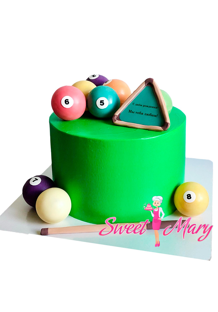 Торт “Бильярд «Легкий удар»” — это уникальное кулинарное произведение, созданное специально для настоящих ценителей мужского стиля. Его привлекательная особенность — сочный зеленый крем, символизирующий зеленое сукно бильярда, а сверху украшают настоящие миниатюры бильярдных шаров, выполненные из сахарной глазури. Этот торт станет ярким центром внимания на празднике, подчеркивая страсть к игре и элегантность в каждом кусочке. Идеально подходит для торжества по случаю дня рождения мужчины, который ценит оригинальность и неординарные идеи.