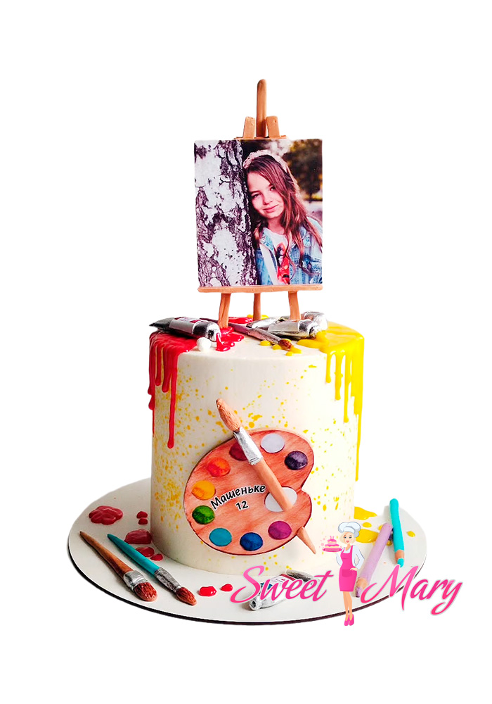 Торт “Мастерство и краски” — это изысканное кулинарное произведение искусства, созданное специально для ценителей творчества. В его основе — нежный, воздушный торт белоснежного цвета, символизирующий чистый холст для вдохновения. На поверхности торта возвышается миниатюрный мольберт, украшенный фигуркой очаровательной художницы, погруженной в процесс создания шедевра. Вокруг неё аккуратно разложены разноцветные тюбики с красками, которые словно оживают благодаря мастерству кондитеров. Этот торт станет не просто десертом, но настоящим украшением любого праздника, посвященного творчеству или дню рождения талантливого художника.