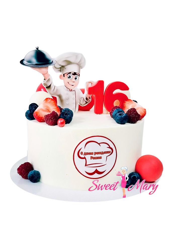 Торт “Шефский десерт” — это изысканное кулинарное произведение, созданное специально для настоящего мастера кулинарии. Его нежная белая глазурь украшена изящными цифрами “16”, символизируя годы опыта и мастерства. В центре композиции гордо возвышается фигурка повара, выполненная из кондитерской массы, воплощая страсть к гастрономическому творчеству. Этот торт украшен свежими ягодами, которые добавляют ему пикантности и натурального вкуса, подчеркивая высокое качество ингредиентов. Идеальное сочетание визуальной красоты и вкусовых ощущений делает “Шефский десерт” идеальным подарком для любого профессионала кухни, способного оценить настоящую кулинарную гармонию.