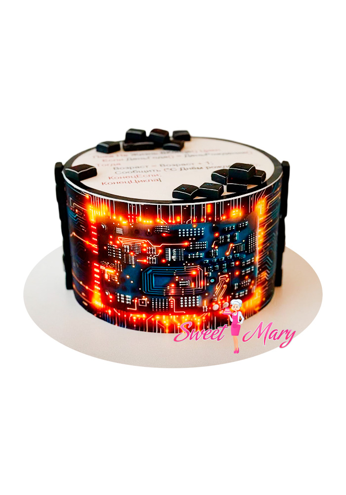Представляем уникальный десерт для настоящих энтузиастов IT — торт-репозиторий! Этот кулинарный шедевр выполнен в виде современного процессора, создавая удивительный симбиоз технологий и гастрономии. Каждый слой торта аккуратно стилизован под элементы схемы микропроцессора, а глазурь украшена логотипами популярных языков программирования и фреймворков. • Форма и дизайн: Торт имеет точную форму процессора, включая текстуры и линии, которые визуально напомнят о вашей любимой материнской плате. • Вкус: Сочетание нежного шоколадного бисквита с кремом из голубики и ванили, символизирующее холодный запуск системы. • Упаковка: Доставляется в стильной коробке, напоминающей упаковку новейшего комплектующего. Этот торт станет настоящим украшением любого корпоративного праздника или дня рождения среди коллег-программистов. Порадуйте себя или своих друзей уникальным подарком, который точно запомнится надолго!