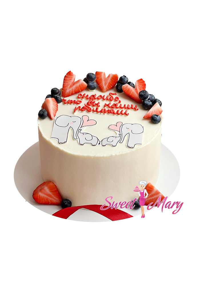 Торт «Мамина нежность» — это трогательное кулинарное произведение, созданное с любовью и заботой специально для ваших родителей. В центре композиции располагается очаровательный семейный ансамбль слоников, выполненный из нежного крема, что добавляет торту неповторимую теплоту и уют. Каждый кусочек этого шедевра украшен свежими ягодами, которые щедро добавляют натуральный вкус и витамины, создавая изысканный баланс сладости и освежающего аромата. Этот торт станет не просто праздничным десертом, но и символом семейного тепла и благодарности.