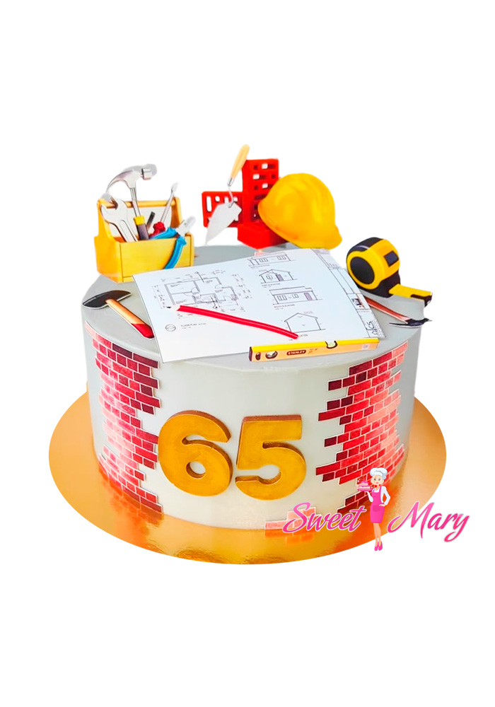 Представляем уникальный торт “Торт с чертежами” — идеальный подарок для настоящего строителя! Этот шедевр кондитерского искусства выполнен в благородном сером цвете, символизируя прочность и надежность строительных проектов. На торте аккуратно выложены красочные элементы из сахара, напоминающие красные кирпичи, что придает изделию особенный профессиональный шарм. Цифры “65”, выполненные из глазури, могут быть интерпретированы как годовая отметка или важный проектный номер, делая этот десерт поистине уникальным. Торту дополняют детали, имитирующие строительные материалы, создавая эффект настоящего чертежа на сахарной основе. Идеально подходит для корпоративов, юбилеев или просто приятного чаепития с коллегами по цеху!