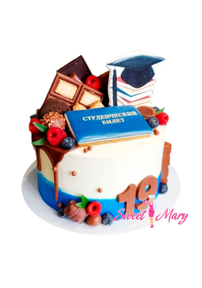 Торт “Вкус дружбы” — это особенное лакомство для студентов, созданное с душой и вниманием к деталям. В его изысканной бело-синей цветовой гамме гармонично сочетаются символы студенческой жизни: на поверхности торта изящно вылеплены цифры “19”, символизирующие начало учебного года, а также стилизованное изображение студенческого билета, наполненного ностальгией и теплом студенческих воспоминаний. Этот торт украшен настоящими миниатюрами сладостей и аккуратными фигурками книг, воплощая атмосферу студенческих посиделок и дружеских чаепитий. Каждое произведение искусства из теста и крема служит напоминанием о незабываемых моментах учёбы, дружбе и совместных достижениях. Идеален для празднования дней рождения, выпускных вечеров или просто как приятный сюрприз для друга или одногруппника!