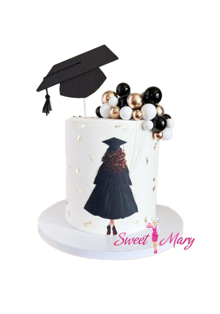 Торт “Вкус знаний” — это изысканное кулинарное произведение, созданное специально для студентов, которые стремятся к вершинам академических достижений. Этот торт поражает своей чистотой и элегантностью: нежный белый фон украшен изображением очаровательной выпускницы, символизирующей успешное завершение учебного пути. Особенностью десерта являются шоколадные шарики, аккуратно разбросанные по поверхности торта, словно золотые медали среди страниц учебников. Это не просто угощение, а настоящий праздник знаний и достижений, который станет отличным подарком на День знаний или выпускной вечер!