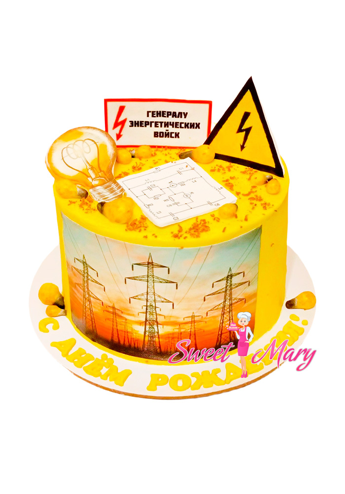Представляем вам уникальный торт «Зажигательный десерт» — настоящий праздник для всех любителей электричества! Этот торт яркого желтого цвета сразу привлечет внимание своим оригинальным дизайном: его поверхность украшена миниатюрами электрических столбов и светящихся ламп, создавая иллюзию праздничного освещения. В центре торта расположилась забавная шуточная надпись, которая наверняка вызовет улыбку у каждого электрика. Идеальный подарок для дня рождения или корпоративного мероприятия, который не оставит равнодушными ни одного ценителя техники и сладких сюрпризов!
