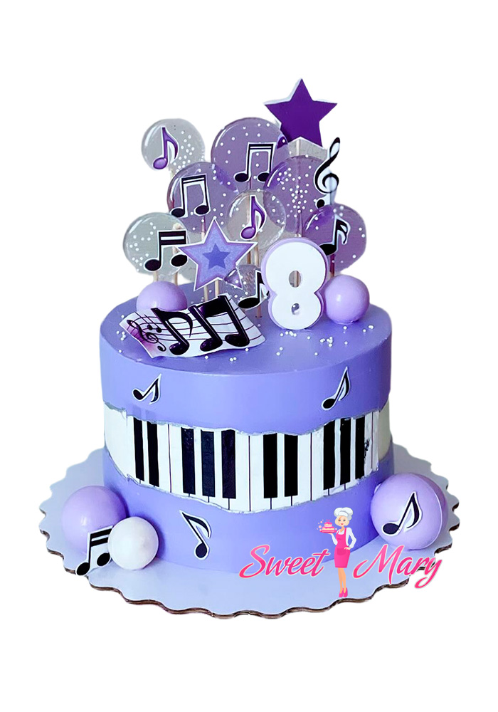 Представляем уникальный торт «Торт-оркестр» — произведение кулинарного искусства, созданное специально для настоящих меломанов! Этот изысканный десерт поражает своим дизайном: нежный фон фиолетового цвета украшен элементами музыкальной тематики. На торте изящно расположены нотные листы, миниатюрные клавиши, словно ключи к волшебству звуков, а также леденцы на палочке, добавляющие нотку игривости и свежести. В центре композиции гордо красуется цифра 8, символизирующая бесконечность музыки и радости. Такой торт станет настоящим украшением любого музыкального праздника или торжества в честь любимого музыканта!