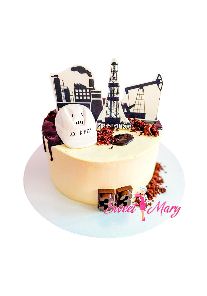 Торт “Буровая мощь” — это изысканное кулинарное произведение, созданное специально для настоящих профессионалов нефтегазовой отрасли. Белоснежный фон торта украшен реалистичным изображением каски бурильщика, символизирующей смелость и профессионализм. В центре композиции — миниатюра завода по переработке нефти, выполненная с потрясающей детализацией. Особенность этого торта — изящные цифры “33”, выложенные из шоколадной глазури, которые могут обозначать юбилей или значимую дату в карьере нефтяника. Это не просто десерт, а настоящий подарок, который поразит воображение и поднимет настроение!