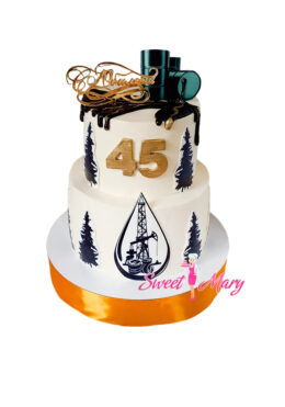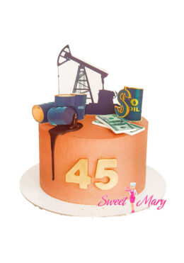 Торт «Буровая победа» — это уникальное кулинарное произведение, созданное специально для настоящих профессионалов нефтегазовой отрасли. Этот роскошный десерт выполнен в виде черной бочки, наполненной «нефтью» из густого шоколадного крема, что придает ему не только визуальное сходство с настоящим оборудованием, но и особую атмосферу успеха. В центре торта сияют цифры «29», символизирующие важную дату или достижение, делая этот подарок запоминающимся и значимым. Идеально подходит как для корпоративных мероприятий, так и для личного торжества нефтяников, подчеркивая их профессионализм и вклад в индустрию.
