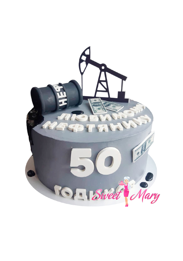 Торт “Глубинный источник” — изысканное кулинарное творение, созданное специально для знаменательного юбилея нефтяника! Этот роскошный черный торт, украшенный мельчайшими деталями, символизирует 50 лет профессионального пути. В его оформлении поражает настоящая мини-станция с качалкой, выполненная из съедобных элементов, а также миниатюрная бочка с символической “нефтью”. На вершине торта расположены золотые доллары, подчеркивающие значимость достижений в нефтегазовой отрасли. Это не просто десерт — это настоящий шедевр, который станет главным украшением любого торжества!