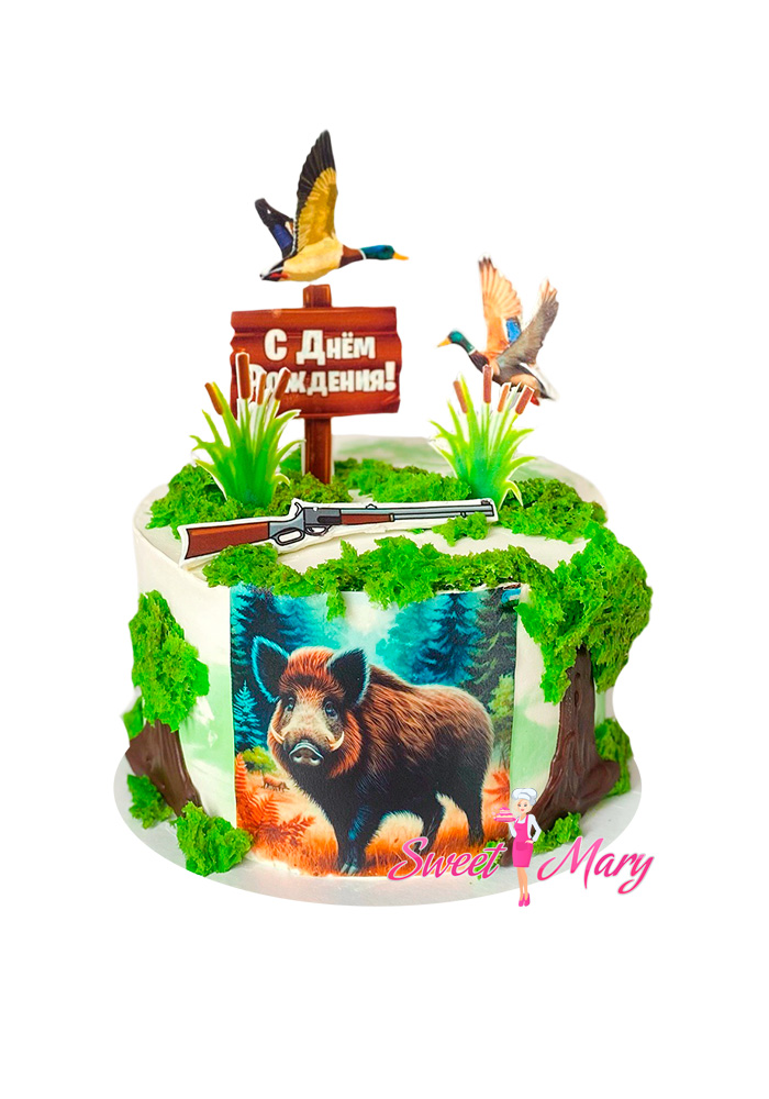 Торт “Лесной мастер” — это уникальное кулинарное произведение, созданное специально для настоящих ценителей природы и охоты. В его основе — нежный кремово-шоколадный фон, украшенный изысканными элементами, символизирующими лесные мотивы. Особенностью этого торта является центральная композиция из фигурки дикого кабана, выполненной из кондитерского теста с потрясающим реализмом. Каждый кусочек напоминает о захватывающих приключениях в дебрях леса, а сочетание сочного малинового джема и мягкого бисквита создает неповторимый вкусовой опыт, который надолго останется в памяти. Идеален как для праздничного стола охотника, так и для подарка настоящему ценителю природы!