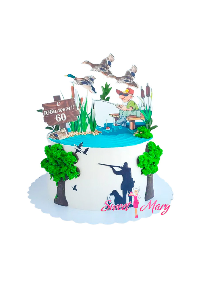 Торт «Следы на тропе» — изысканное лакомство, созданное специально для настоящих любителей природы и приключений. Этот белый торт украшен очаровательными утками, символизирующими безмятежность и легкость жизни, что идеально подходит как для опытного охотника, так и для страстного рыбака. На торте аккуратно выгравированы цифры “60” и красочная надпись “С Юбилеем”, делая его идеальным подарком к знаменательному дню рождения. Каждый кусок этого торта напоминает о незабываемых путешествиях по лесным тропам и тихой рыбалке у озера, наполняя сердце радостью и теплом праздничных моментов.