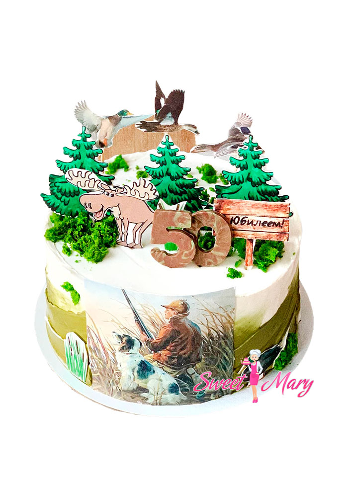 Торт “Следы в снегу” — изысканное кулинарное произведение, созданное специально для торжества по случаю 50-летия! Этот уникальный десерт украшен живописными элементами, символизирующими бескрайние просторы природы. На его поверхности изящно вылеплены дикие утки, парящие над замерзшей водой, а также могучий лось, гордо стоящий среди пушистых снежных сугробов и высокого камыша. Каждый элемент декора выполнен с любовью и вниманием к деталям, создавая неповторимую атмосферу охоты и романтики зимней поры. Этот торт станет не только роскошным украшением праздничного стола, но и незабываемым подарком для ценителей природы и настоящего мужественного праздника.