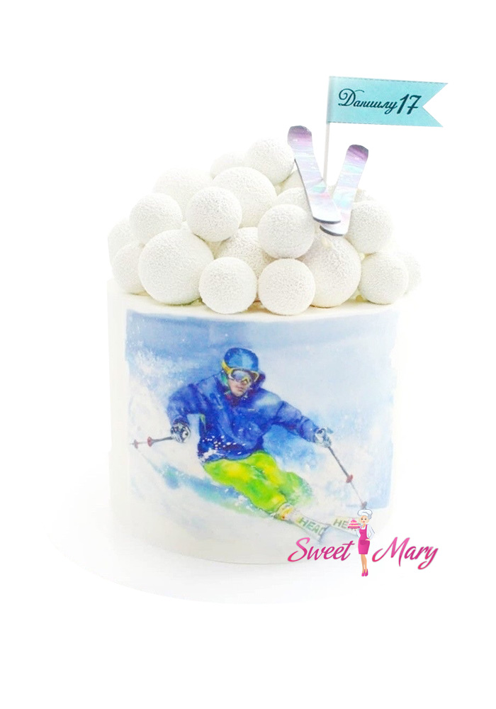 Торт “Буря на склоне” — это уникальное кулинарное произведение, созданное специально для сноубордиста! Белоснежный фон торта создает атмосферу чистого снега, а шоколадные шары символизируют снежные вихри, окружающие главного героя — красочного сноубордиста, лихо спускающегося по склону. На торте искусно вылеплены фигурки лыж и сноуборда, подчеркивающие страсть к экстремальным видам спорта. Идеально подходит для праздничного дня парня на 17 лет, добавляя в торжество драйва и вдохновения!