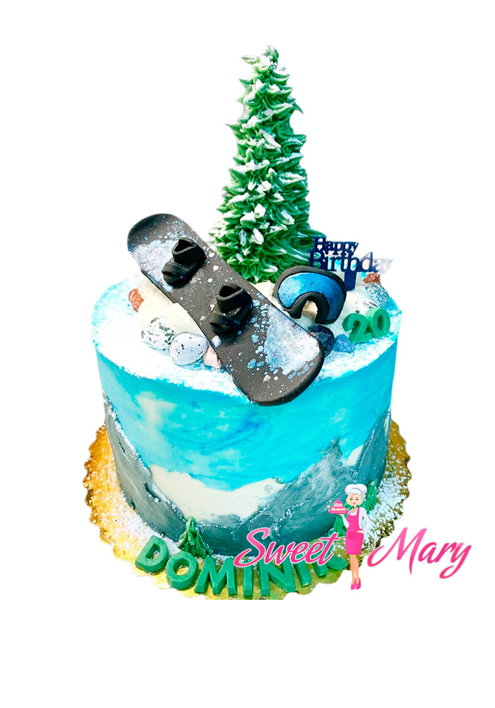 Торт “Ледяной трюк” — это настоящий шедевр для любого сноубордиста! Созданный в изысканных оттенках голубого цвета, он словно перенесёт вас на горные склоны. На торте мастерски изображены снежные елки и величественные горы, а в центре — динамичный сноубордист в стильных очках, готовый к захватывающему трюку. Это не просто десерт, а уникальное произведение искусства, которое станет настоящим украшением любого праздника или знаменательного события!