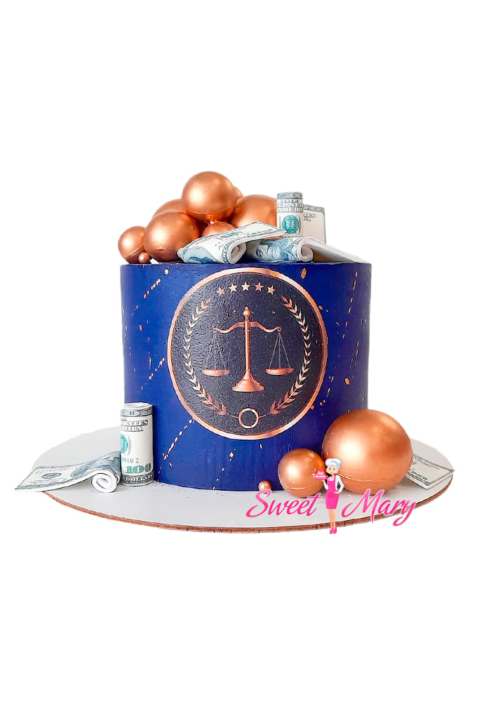 Представляем уникальный торт “Судье – За честность”! Этот изысканный десерт поражает своей символикой и вкусом. Оттенки глубокого синего цвета создают атмосферу доверия и справедливости, а центр композиции украшают золотые весы, выполненные из сахарной глазури. Вокруг них расставлены шоколадные шары, символизирующие весомость решений, а на верхнем ярусе изящно разместились серебряные доллары, подчеркивающие значимость честного подхода к делу. Этот торт станет незабываемым подарком для всех, кто ценит справедливость и профессионализм. Подарите его любимому судье или коллеге, чтобы выразить уважение и благодарность за их работу.