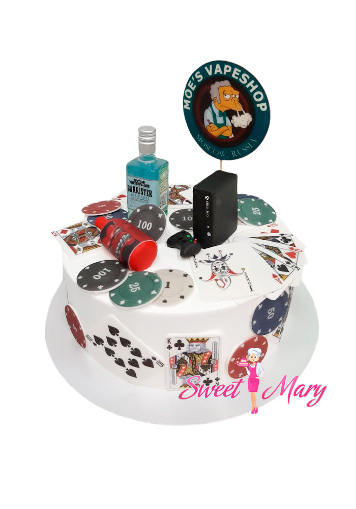 Представляем уникальный десерт — торт “Ликёрный” в виде бутылки! Этот изысканный тортик, выполненный в белом цвете, украшен настоящей бутылью ликёра, создавая неповторимую атмосферу праздника. На поверхности торта аккуратно размещены карты и покерные фишки, что придает ему стильный и интригующий вид, словно вы оказались на роскошной вечеринке. Подарите себе или своим гостям незабываемый момент с помощью этой уникальной тортиковой приставки, которая станет главным украшением стола на любом торжестве.