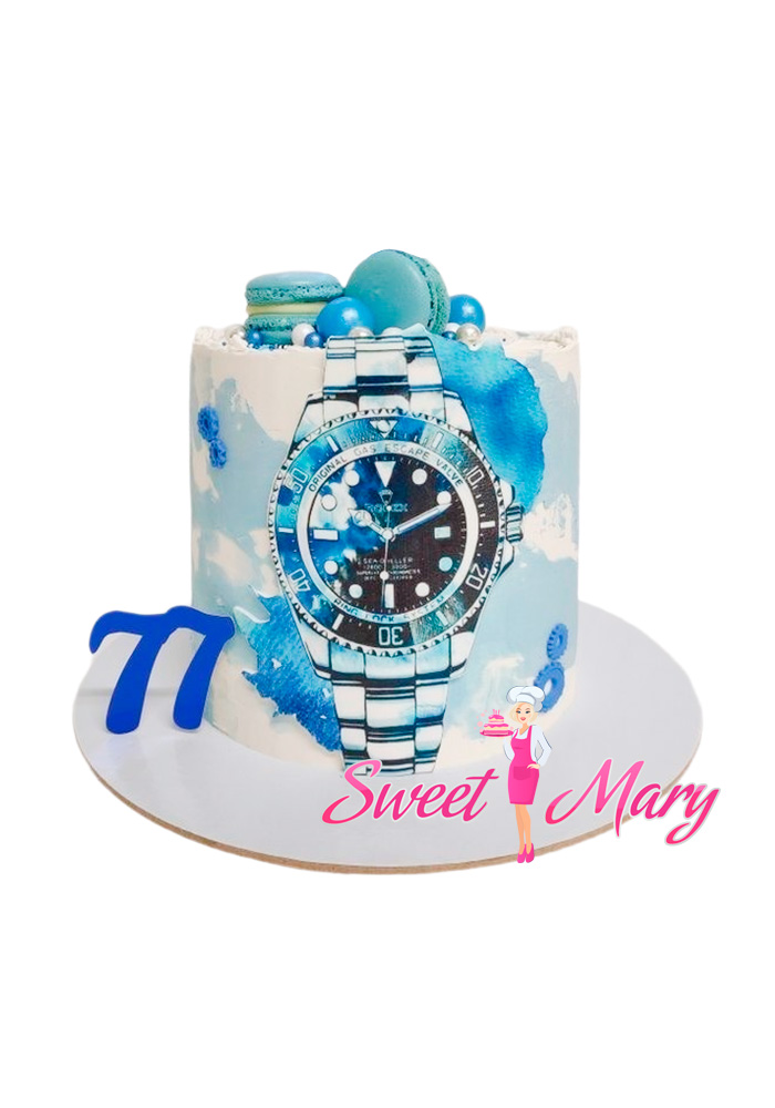Представляем уникальный десерт — торт “Шоколадный циферблат”! Этот роскошный торт в форме изысканных часов Rolex станет настоящим сюрпризом для вашего дорогого папы или уважаемого дедушки на юбилейное торжество, например, на 77-летие. Основу торта составляет нежнейший шоколадный слой, украшенный макаронами разных оттенков, символизирующими стрелки и цифры на часах. Каждый элемент декора выполнен с любовью и точностью, создавая неповторимую атмосферу праздничного торжества. “Шоколадный циферблат” — это не просто десерт, а произведение искусства, которое будет радовать вкусовые рецепторы и дарить незабываемые впечатления. Идеально подходит для того, чтобы отметить особенный день с любимыми людьми и подчеркнуть значимость этого события.