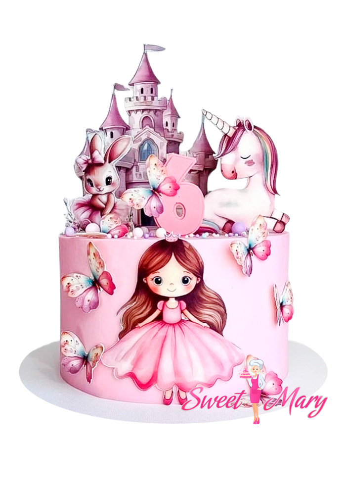 Торт “Девочка-цветик” — это настоящее произведение кондитерского искусства, созданное специально для маленьких принцесс! Этот восхитительный торт розового цвета поражает своей красотой и нежностью. В его центре расположилась очаровательная фигурка девочки, окруженной цветами и сияющими лепестками, что делает его идеальным украшением праздника на день рождения девочки 6 лет. Главной фишкой торта является великолепный замок, возвышающийся на одной из сторон, словно приглашая к приключениям. Рядом с ним пасётся дружелюбный зайчик, а рядом гордо стоит величественный единорог — символы волшебства и радости. Каждый элемент декора выполнен с любовью и вниманием к деталям, создавая неповторимую атмосферу праздника. Этот торт не только вкусен, но и наполнен магией детских мечтаний, делая день рождения незабываемым событием для юной именинницы и её друзей.