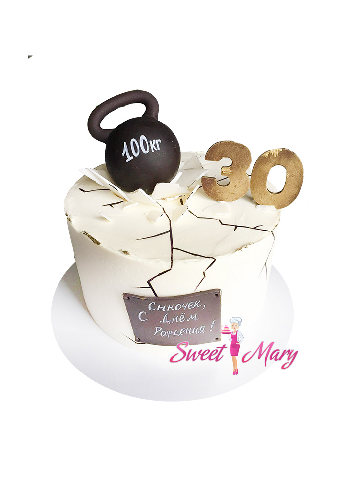 Торт “Энергетик” – это уникальное кулинарное произведение, созданное специально для особенного дня рождения! Этот торт белого цвета поражает своим дизайном: его основная часть выполнена в форме классической гири весом 30 кг, символизирующей силу и мощь. Идеально подходит для празднования 30-летия активного и энергичного мужчины, который ценит как вкусовые качества, так и оригинальность. Сочный крем, нежные слои бисквита и изысканный шоколадный ободок делают этот торт не только запоминающимся подарком, но и настоящим гастрономическим событием.