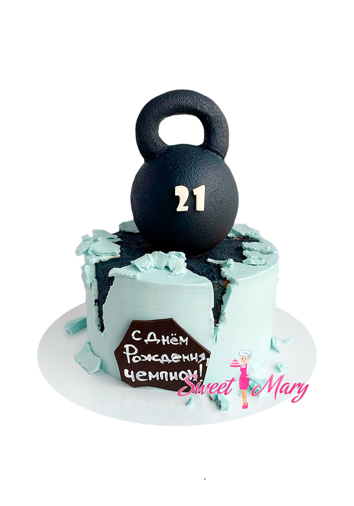 Торт “Энергия” — это уникальное кулинарное произведение, созданное специально для особенного дня! С его привлекательным синим оттенком он напоминает о динамике и силе, а форма торта, стилизованная под гири, добавляет элемент спортивного стиля. Идеально подходит для празднования 21-летия молодого человека, который ценит энергию и активность. Каждый кусочек этого торта обещает не только вкусное наслаждение, но и заряд бодрости, делая этот день рождения незабываемым событием.