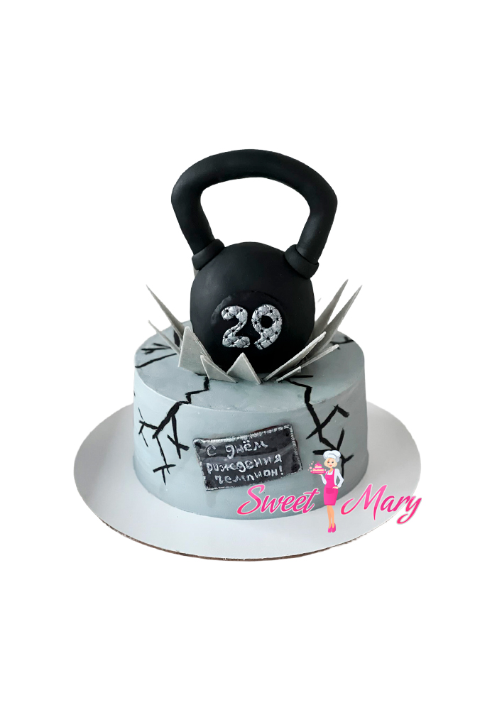 Представляем уникальный десерт — торт “Гиря-лакомство”! Этот кулинарный шедевр выполнен в форме настоящей гири, покрыт нежным кремом серого цвета, что придает ему стильный и оригинальный вид. Идеально подходит как сюрприз на день рождения для активного мужчины в возрасте 29 лет, кто ценит как вкусные десерты, так и спортивную тематику. Каждый кусок этого торта — это не просто лакомство, а настоящий заряд бодрости и вдохновения!
