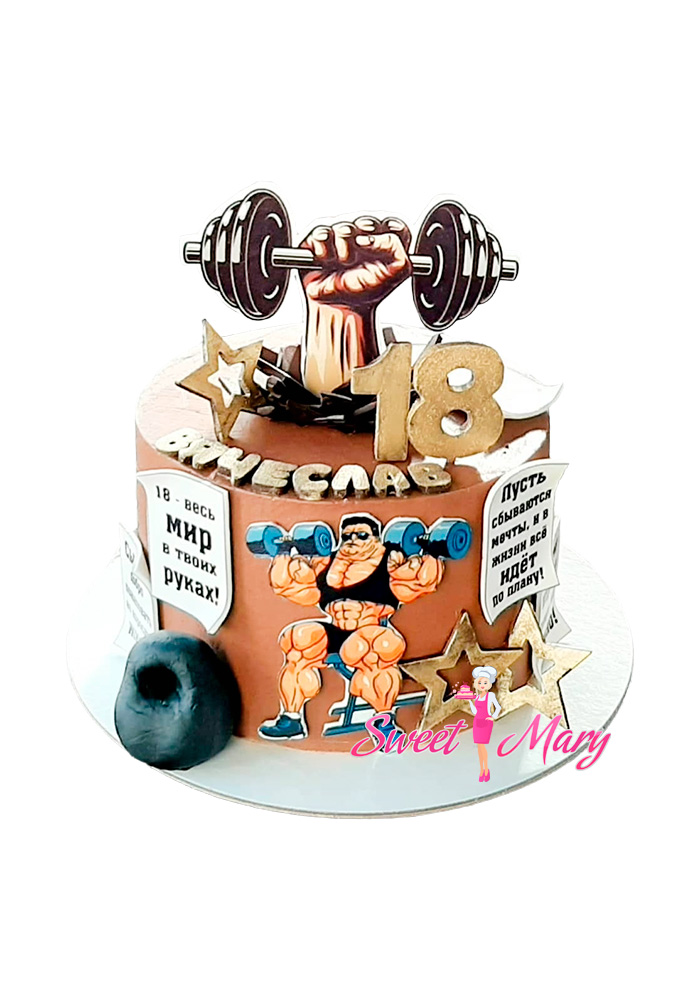 Представляем уникальный подарок для настоящего спортсмена — торт “Гиря-сюрприз”! Этот тортик коричневого цвета создан специально для особенного случая — дня рождения парня на 18 лет. Его центральная деталь — реалистичная гири, выполненная из кондитерской массы, добавляет неповторимую нотку оригинальности и юмора. Подарите своему другу или близкому человеку не просто десерт, а символ его увлечений и достижений в спорте. Идеально подходит для любителей здорового образа жизни и бодибилдеров, кто ценит как вкусовые, так и визуальные впечатления.