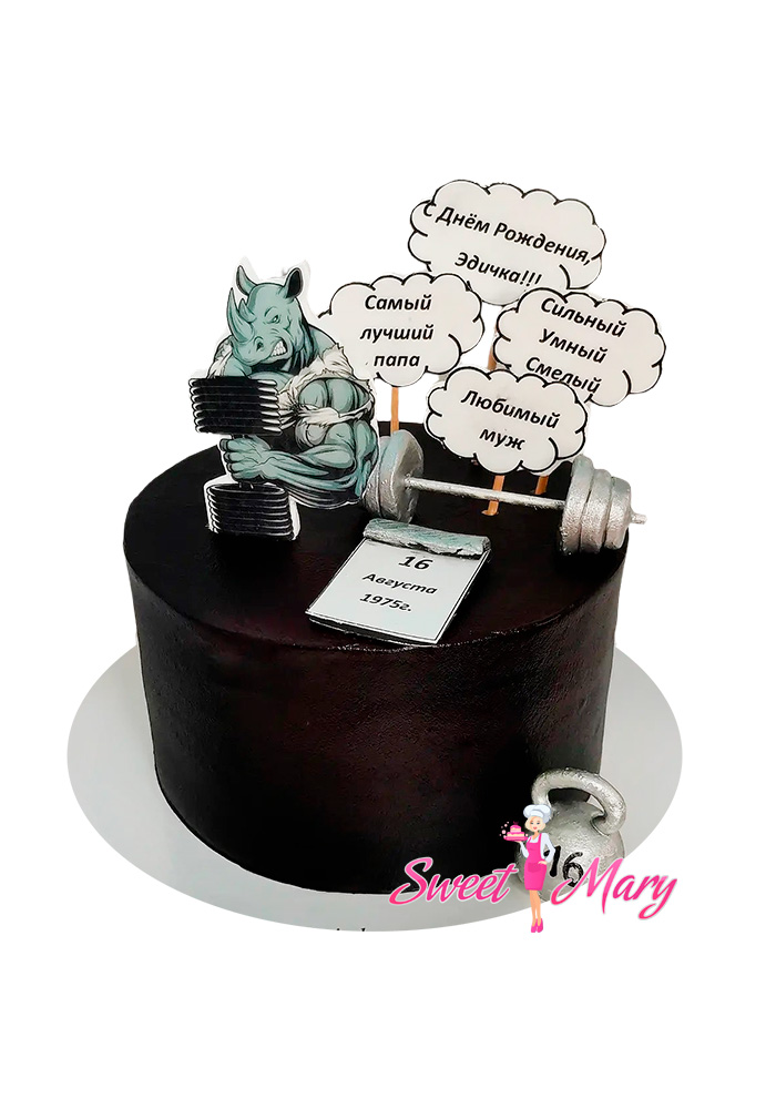 Представляем вам уникальный торт “Вкусная гиря” – идеальный подарок на день рождения для настоящего любителя фитнеса! Этот черноглазый шедевр украшен настоящим металлическим набором гири, которые буквально притягивают взгляд. Торт выполнен в темных оттенках, создавая эффектную контрастность с серебром аксессуаров. Идеальное сочетание вкуса и стиля, он станет главным украшением праздничного стола и подарит незабываемые эмоции как самому имениннику, так и его друзьям. Подарите мужчине праздник, который точно останется в памяти!