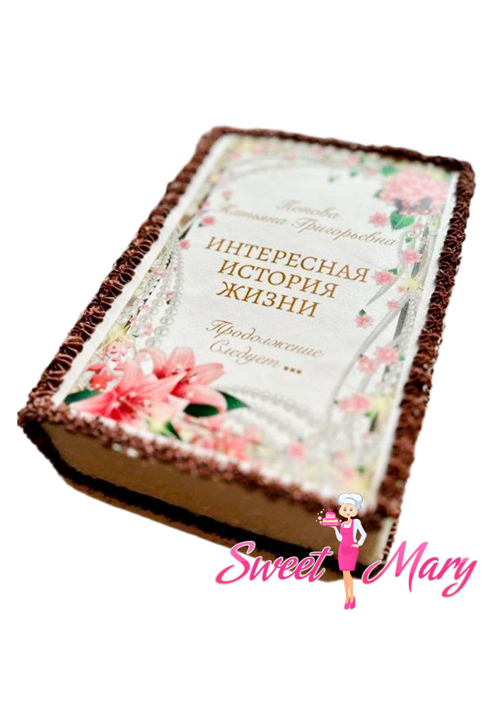 Торт в виде книги «Книга удовольствия» — это уникальное кулинарное произведение искусства, идеально подходящее для торжественного юбилея женщины. Этот изысканный десерт выполнен в форме настоящей книги, покрытый нежной глазурью коричневого цвета, что придает ему элегантность и таинственность. На обложке аккуратно выгравирована надпись “Интересная история жизни”, символизирующая богатство жизненного опыта и достижений именинницы.