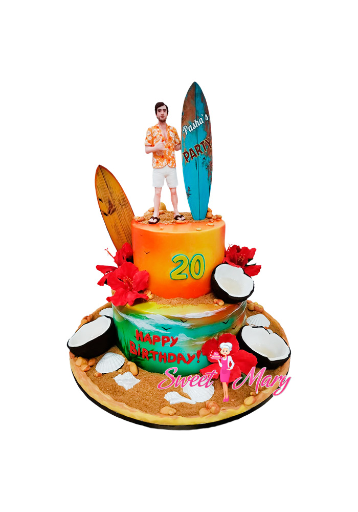 Торт “Кокосовая фантазия” — это настоящий шедевр для яркого празднования тридцатилетнего юбилея! Этот восхитительный десерт выполнен в форме экзотического кокоса, украшенного пальмовыми ветвями и динамичными силуэтами серферов на волнах. Каждый кусок этого торта наполнен нежным вкусом кокоса, что создает атмосферу тропического рая прямо за столом. Идеально подходящее угощение для мужчины, который мечтает о приключениях и ярких впечатлениях, этот торт станет настоящим центром внимания на празднике.