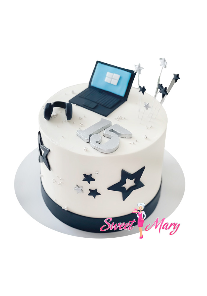 Торт “Retina” — уникальное кулинарное произведение, созданное специально для юного энтузиаста технологий! Этот торт в виде ультрасовременного ноутбука станет потрясающим подарком парню на 15-летие. Белоснежная глазурь украшена изысканными черными звездами, символизирующими инновации и стиль. Внешний вид точной копии ноутбука с яркой “Retina” дисплеем сделает праздничный стол настоящим центром внимания. Идеальное сочетание вкуса и дизайна, которое точно вызовет восторг у юбиляра и всех гостей!