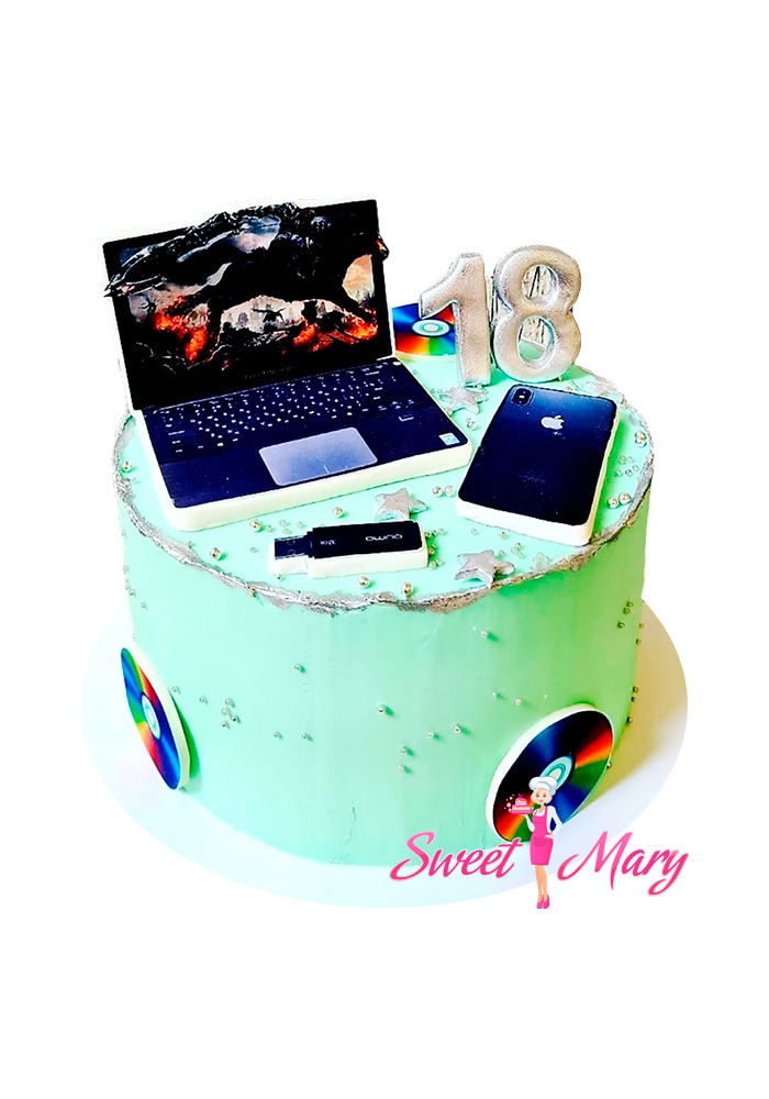 Торт “Кабель” — это уникальное кулинарное произведение, идеально подходящее для праздника дня рождения парня! Этот тортик выполнен в форме ноутбука, украшенного зелеными дисками, что придает ему стиль и оригинальность. Главный акцент — центральная часть, стилизованная под популярный ноутбук, дополненная миниатюрами “Айфона”, создающими эффект законченности и современности. Зелёные оттенки торта символизируют свежесть и инновации, делая его не просто угощением, а настоящим произведением искусства для тех, кто ценит технологии и креативность. Идеальный подарок для юбиляра, который отмечает 18-летие, этот торт удивит своим дизайном и вкусом, превратив празднование в незабываемое событие.